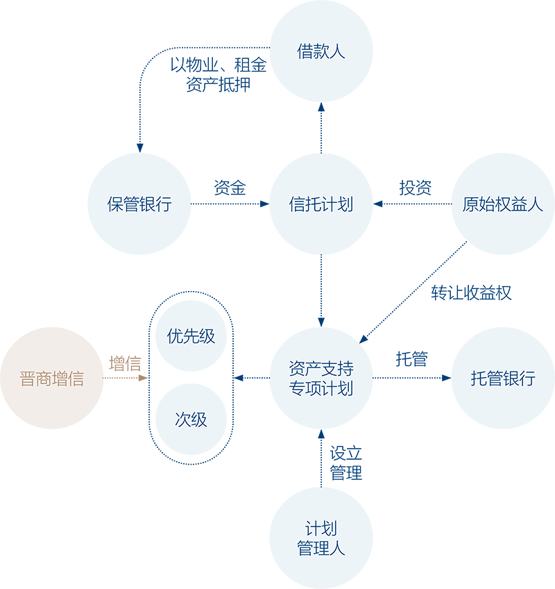 晋商信用增进公司对企业发行商业房地产抵押贷款支持证券(CMBS)或住房抵押贷款支撑证券(RMBS)的优先级份额提供增信服务,从而满足企业和监管部门的发行要求。